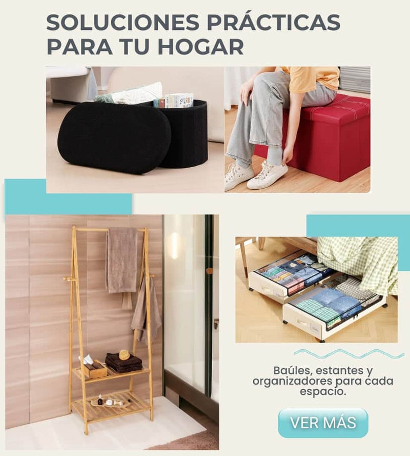 Ver todos los detallesBanco baúl plegable de diseño funcional y moderno.Tapizado en tela suave, ofrece un cómodo asiento y espacio interior para guardar objetos.Ideal pa...