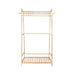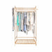 La barra superior proporciona un espacio suficiente para colgar cualquier pantalón largo, abrigos y vestidos. Estante inferior ancho y grueso que proporciona una gran capacidad de carga. Agujeros de tornillo hundidos y bambú bien pulido para evitar arañazos de tu familia
