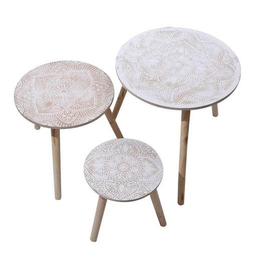 Ver todos los detallesSet 3 mesas de centro madera mandalas